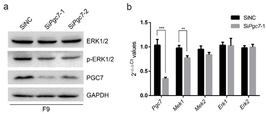 2.3. PGC7 Regulates ERK Activity by Regulating Mek1 Expression