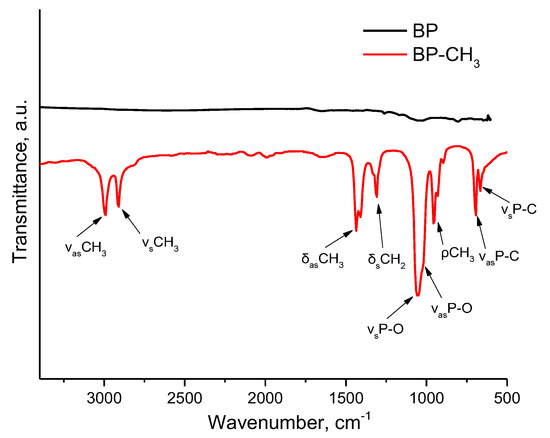 Kuchkaev, A.M.; Kuchkaev, A.M.; Sukhov, A.V.; Saparina, S.V.; Gnezdilov, O.I.; Klimovitskii, A.E.; Ziganshina, S.A.; Nizameev, I.R.; Asanov, I.P.; Brylev, K.A.; et al. In-Situ Electrochemical Exfoliation and Methylation of Black Phosphorus into Functionalized Phosphorene Nanosheets. Int. J. Mol. Sci. 2023, 24, 3095. https://doi.org/10.3390/ijms24043095