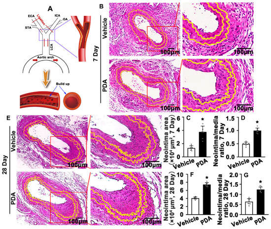2.1. PDA Promotes Partial Carotid Artery Ligation-Induced Neointima Formation
