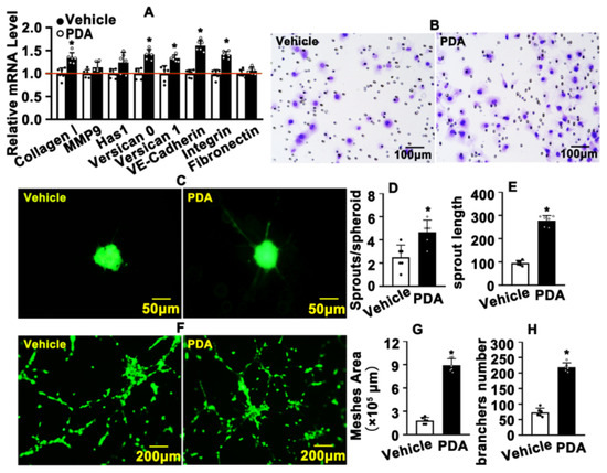 2.3. PDA Promotes Vascular Endothelial Cells Migration