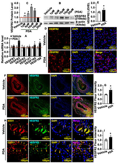 2.5. PDA Activates VEGF Signaling Pathway after Vascular Injury