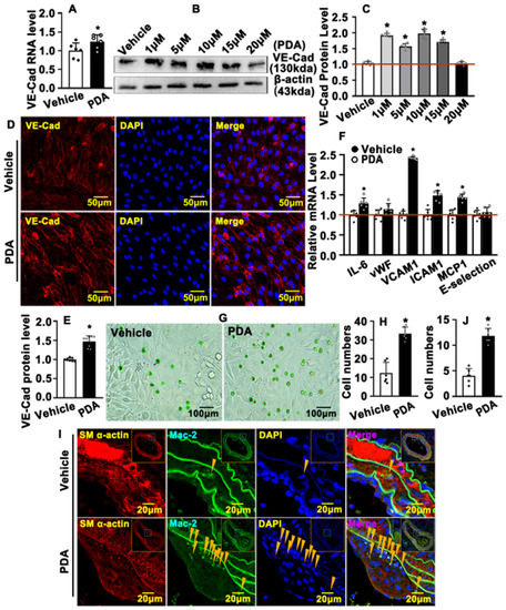 2.6. PDA Causes VE-Cad-Dependent Vascular Endothelial Barrier Repair