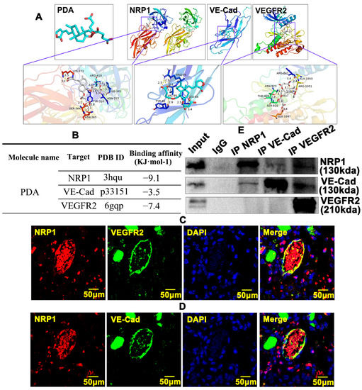 2.7. PDA Regulates the Interaction between NRP1, VEGFR and VE-Cad within Vascular Endothelial Cells