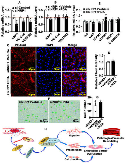 2.8. PDA Regulates Vascular Endothelial Barrier Function through the NRP1/VEGFR2/VE-Cad Signaling Pathway