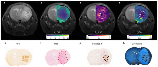 - Perlman, O.; Ito, H.; Herz, K.; Shono, N.; Nakashima, H.; Zaiss, M.; Chiocca, E.A.; Cohen, O.; Rosen, M.S.; Farrar, C.T. Quantitative imaging of apoptosis following oncolytic virotherapy by magnetic resonance fingerprinting aided by deep learning. Nat. Biomed. Eng. 2022, 6, 648–657. [Google Scholar] [CrossRef]