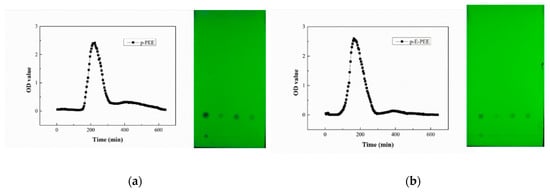 From the calculation results of the external calibration curve method (shown in Table 2), it can be concluded that the hydroxyl-α-sanshool in the p-PEE and p-E-PEE, with purity rates of 93.07% and 98.34%, was obtained, and the yields of the two eluted extraction samples were 7.32% and 12.42%, respectively. Additionally, the recovery rates of hydroxyl-α-sanshool in the p-PEE and p-E-PEE were 107.58% and 121.65%, respectively. Therefore, it could be clearly seen that the purity, yield, and recovery rates of the hydroxyl-α-sanshool obtained by p-E-PEE were higher than those of the hydroxyl-α-sanshool in the p-PEE.