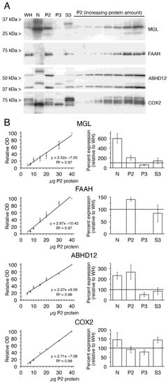 2.2. Distribution of 2-AG Metabolizing Enzymes in Subcellular and Subnuclear Fractions