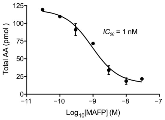 - Deutsch, D.G.; Omeir, R.; Arreaza, G.; Salehani, D.; Prestwich, G.D.; Huang, Z.; Howlett, A. Methyl Arachidonyl Fluorophosphonate: A Potent Irreversible Inhibitor of Anandamide Amidase. Biochem. Pharmacol. 1997, 53, 255–260. [Google Scholar] [CrossRef]