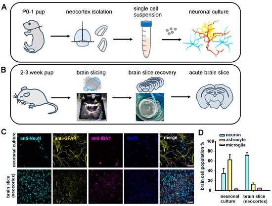 2.1. Cortical Neuronal Culture and Acute Brain Slice Preparation for In Vitro and Ex Vivo Studies