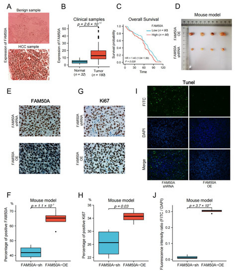 APA StyleXie, X., Li, L., Tao, S., Chen, M., Fei, L., Yang, Q., Huang, C., & Chen, L. (2023). Proto-Oncogene FAM50A Can Regulate the Immune Microenvironment and Development of Hepatocellular Carcinoma In Vitro and In Vivo. International Journal of Molecular Sciences, 24(4), 3217. https://doi.org/10.3390/ijms24043217