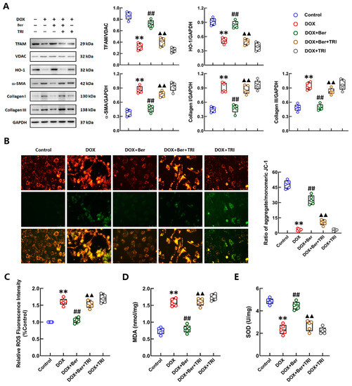 Chicago/Turabian StyleWang, Yiyang, Jia Liao, Yuanliang Luo, Mengsi Li, Xingyu Su, Bo Yu, Jiashuo Teng, Huadong Wang, and Xiuxiu Lv. 2023. "Berberine Alleviates Doxorubicin-Induced Myocardial Injury and Fibrosis by Eliminating Oxidative Stress and Mitochondrial Damage via Promoting Nrf-2 Pathway Activation" International Journal of Molecular Sciences 24, no. 4: 3257. https://doi.org/10.3390/ijms24043257