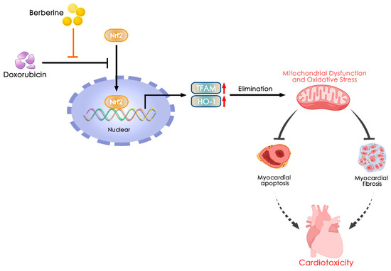 Wang Y, Liao J, Luo Y, Li M, Su X, Yu B, Teng J, Wang H, Lv X. Berberine Alleviates Doxorubicin-Induced Myocardial Injury and Fibrosis by Eliminating Oxidative Stress and Mitochondrial Damage via Promoting Nrf-2 Pathway Activation. International Journal of Molecular Sciences. 2023; 24(4):3257. https://doi.org/10.3390/ijms24043257