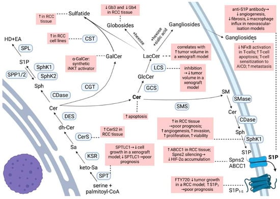 - Młynarczyk, G.; Mikłosz, A.; Suchański, J.; Reza, S.; Romanowicz, L.; Sobolewski, K.; Chabowski, A.; Baranowski, M. Grade-dependent changes in sphingolipid metabolism in clear cell renal cell carcinoma. J. Cell. Biochem. 2022, 123, 819–829. [Google Scholar] [CrossRef]