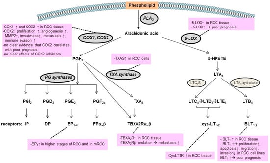 - Matsuyama, M.; Yoshimura, R. Relationship between arachidonic acid pathway and human renal cell carcinoma. OncoTargets Ther. 2008, 1, 41. [Google Scholar] [CrossRef]