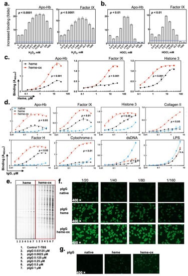 2.1. The Interaction of Heme (Fe3+) with Prooxidative Compounds Increases Its Capacity to Induce the Autoreactivity of Human IgG
