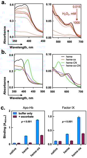 - Nagababu, E.; Rifkind, J.M. Heme degradation by reactive oxygen species. Antioxid. Redox Signal. 2004, 6, 967–978. [Google Scholar] [CrossRef]