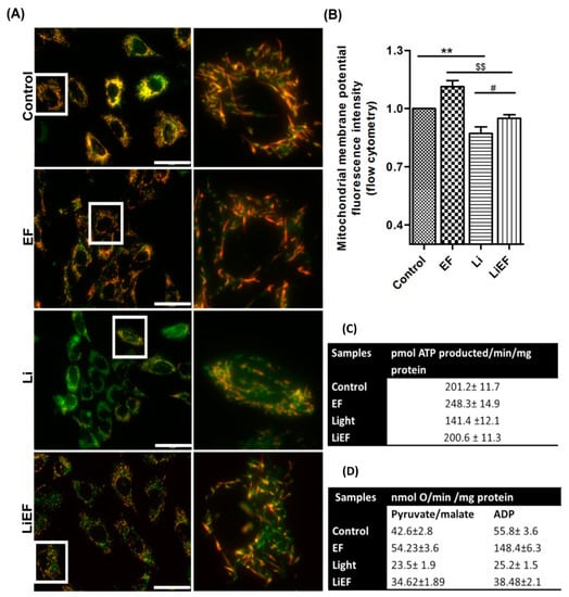 2.2. Effects of EF on Mitochondria and Its Activity in Li Exposed Cells