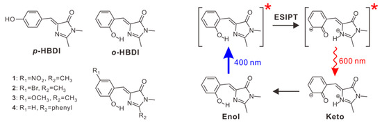 - Joshi, H.C.; Antonov, L. Excited-State Intramolecular Proton Transfer: A Short Introductory Review. Molecules 2021, 26, 1475. [Google Scholar] [CrossRef]