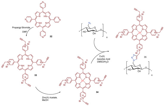 - Ringot, C.; Sol, V.; Granet, R.; Krausz, P. Porphyrin-grafted cellulose fabric: New photobactericidal material obtained by "Click-Chemistry" reaction. Mater. Lett. 2009, 63, 1889–1891. [Google Scholar] [CrossRef]