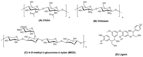 Cellulose in higher vascular plants consists of the xylem tissues, which are known as wood, where cellulosic microfibrils are embedded in a matrix of hemicellulose (an amorphous and complex mixture of linear and branched polysaccharides) and lignin, an unstructured phenolic polymer, randomly branched and crosslinked with cellulose. In nature, this β-O-(1 → 4) homopolymer does not occur as a single chain but as multiple chains (Figure 1A,B) [5,6]. Lignin is commonly derived from wood and one of most abundant organic compounds on Earth, after cellulose and chitin [10,11].