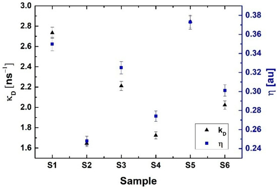 The positron trapping rate κd and the fraction of trapped positrons η calculated for all investigated samples.