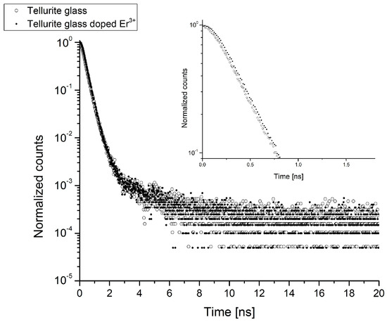 Exemplary experimental PALS spectra measured for tellurite glass and tellurite glass doped with Er3+ ions.