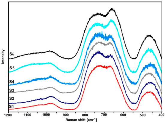 Normalized Raman spectra of S1–S6 glasses.