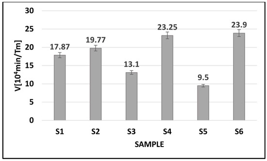 where I3 is the intensity of the long-lived component in the positron lifetime spectrum expressed in [%]; C is an experimentally determined constant [10], which is 0.001–0.002; and Vf is the size of the free volume.