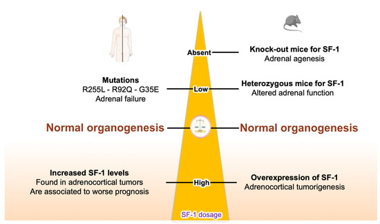 Regulation of both SF-1 expression and activity appears to be crucial as altered functional dosage results in disturbed adrenal and gonadal development and function, causing different pathologies.