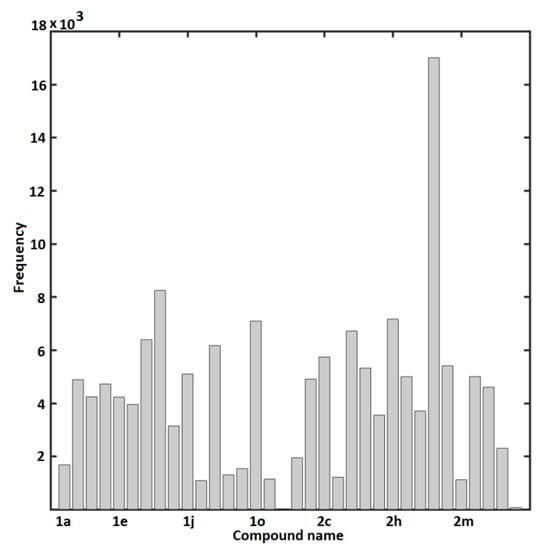 Frequency histogram of molecules 1a-q and 2a-q within test subset for valid SAR models.