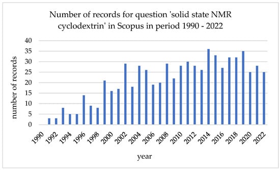 Number of records for query ‘solid-state NMR cyclodextrin’ in Scopus in period 1990–2022.