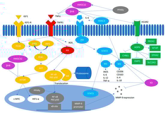 - Zhang, N.; Liu, C.; Jin, L.; Zhang, R.; Wang, T.; Wang, Q.; Chen, J.; Yang, F.; Siebert, H.C.; Zheng, X. Ketogenic Diet Elicits Antitumor Properties through Inducing Oxidative Stress, Inhibiting Mmp-9 Expression, and Rebalancing M1/M2 Tumor-Associated Macrophage Phenotype in a Mouse Model of Colon Cancer. J. Agric. Food Chem. 2020, 68, 11182–11196. [Google Scholar] [CrossRef] [PubMed]