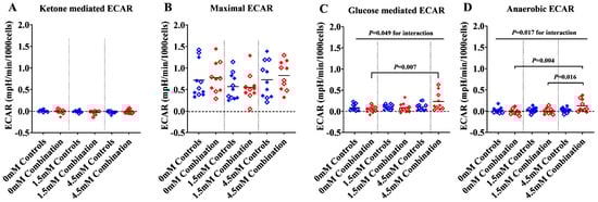 2.1.2. The Presence of Ketones Improves Glycolysis in Diabetes + HFD-Exposed NRCM