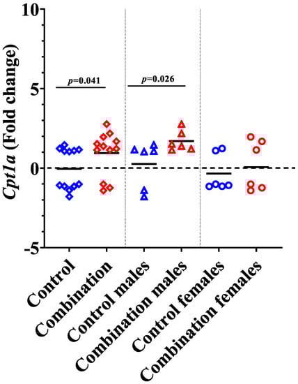 2.4. Diabetes + HFD Increases Expression of Cpt1a in the Neonatal Heart