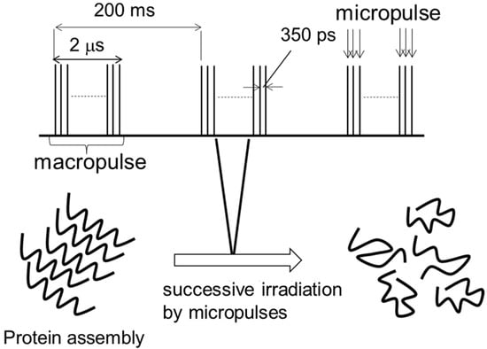 - Kawasaki, T.; Yaji, T.; Ohta, T.; Tsukiyama, K. Application of mid-infrared free-electron laser tuned to amide bands for dissociation of aggregate structure of protein. J. Synchrotron Rad. 2016, 23, 152–157. [Google Scholar] [CrossRef]