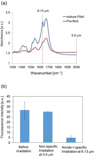 - Kawasaki, T.; Fujioka, J.; Imai, T.; Torigoe, K.; Tsukiyama, K. Mid-infrared free-electron laser tuned to the amide I band for converting insoluble amyloid-like protein fibrils into the soluble monomeric form. Lasers Med. Sci. 2014, 29, 1701–1707. [Google Scholar] [CrossRef] [PubMed]