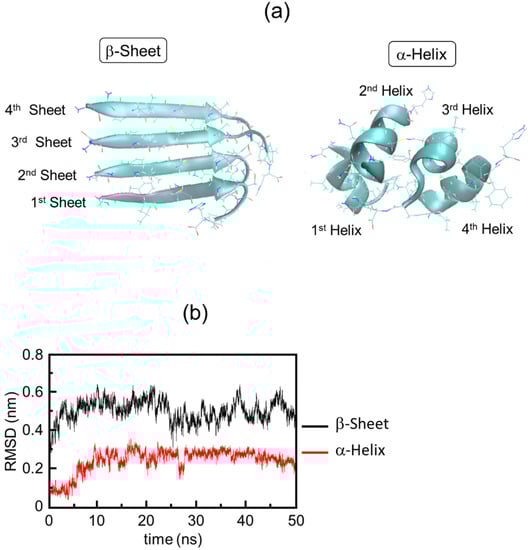 - Smith, M.H.; Miles, T.F.; Sheehan, M.; Alfieri, K.N.; Kokona, B.; Fairman, R. Polyglutamine fibrils are formed using a simple designed β-hairpin model. Proteins 2010, 78, 1971–1979. [Google Scholar] [CrossRef]