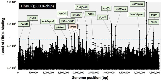 4.3. gSELEX Screening of FlhDC-Binding Sequences