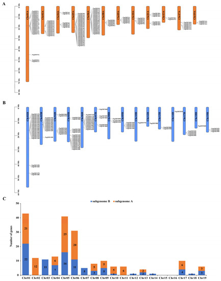 2.2. Chromosomal Distribution of PagERF Genes