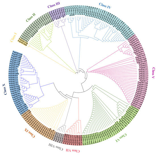 2.3. Phylogenetic Analysis of PagERF Proteins