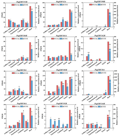 2.7. Expression Pattern Analysis of PagERF Genes