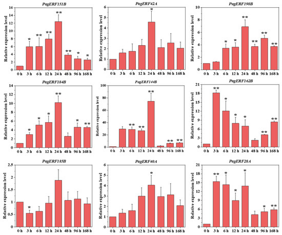 2.8. RT-qPCR Validation of PagERF Gene Expression Patterns