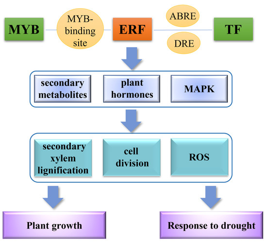 - An, J.P.; Zhang, X.W.; Bi, S.Q.; You, C.X.; Wang, X.F.; Hao, Y.J. The ERF transcription factor MdERF38 promotes drought stress-induced anthocyanin biosynthesis in apple. Plant J. 2020, 101, 573–589. [Google Scholar] [CrossRef]
