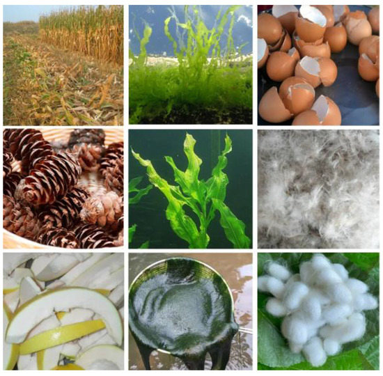 Various biomass produced through plant, animal, algae-based residues.