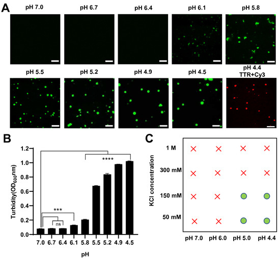 4.3. Phase Separation of EGFP-TTR under Different Acidic Conditions