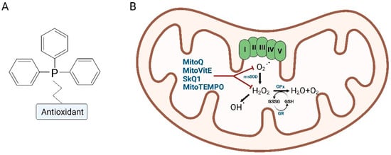 - Jiang, Q.; Yin, J.; Chen, J.; Ma, X.; Wu, M.; Liu, G.; Yao, K.; Tan, B.; Yin, Y. Mitochondria- Targeted Antioxidants: A Step towards Disease Treatment. Oxidative Med. Cell. Longev. 2020, 2020, 8837893. [Google Scholar] [CrossRef]