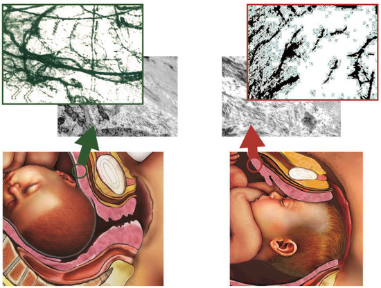 Malvasi et al., suggested that a prolonged fetal head station in LUS, leading to overdistension and inflammation, is responsible for the denervation and reduction in neuropeptides in the dystocic LUS [3]. The same author also reported connective tissue modifications, in particular the reduction in laminin and collagen IV, in uterine samples of patients with PDL, compared with a uterine sample from patients with eutocic labor [34].