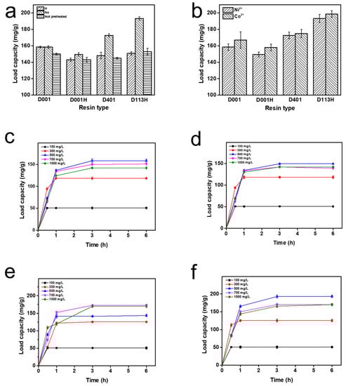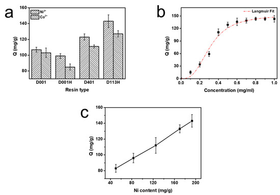 2.1. The Binding Behavior of Ion Exchange Resin with Metal Ions (Ni2+, Co2+)