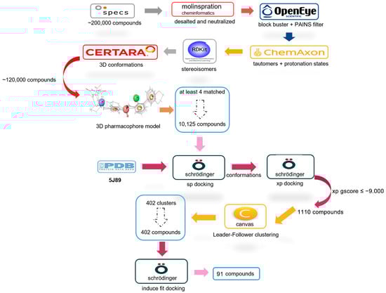 - Shoichet, B.K. Virtual screening of chemical libraries. Nature 2004, 432, 862–865. [Google Scholar] [CrossRef]