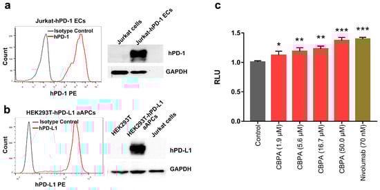 2.3. Blockade of the PD-1/PD-L1 Interaction with CBPA at the Cellular Level